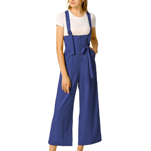 Allegra K Women s High Waist Wide Leg Belted Button Long Overalls Jumpsuit Blue Large Very well made.