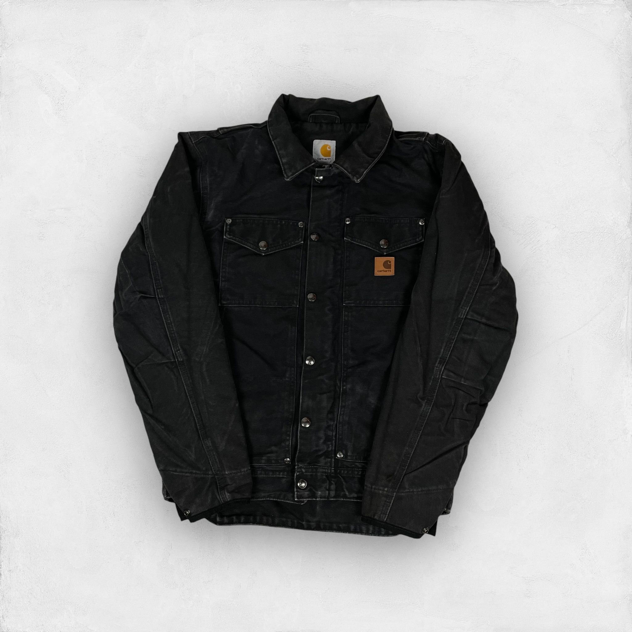 Vintage Carhartt Men s Gray Cotton Snap Button Berwick Jacket Small Grailed Very well made.