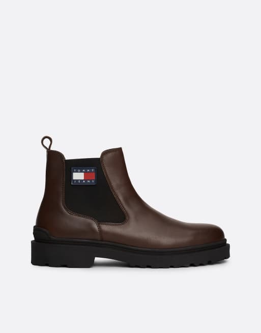 Tommy Jeans Rubberised logo leather cleat chelsea boots in dark brown ASOS Very well made.