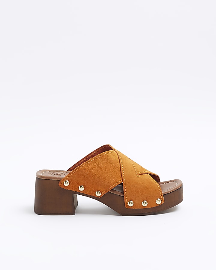 Orange suede studded clog sandals Very well made.