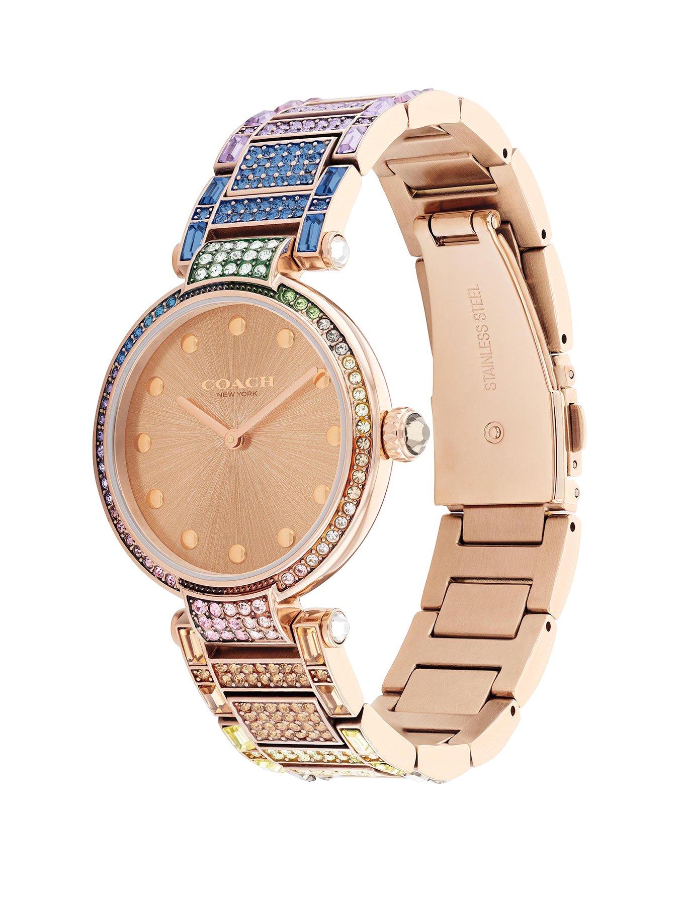 COACH Chelsea Rainbow Crystal Carnation Gold Tone Stainless Steel Bracelet Watch 32mm 14504166 REEDS Jewelers Very well made.