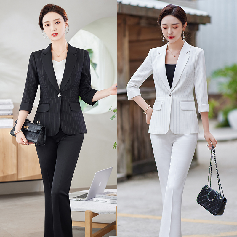 Ready stock Summer Pants Sets For Women 2 Piece Set Half Sleeve Blazer Trousers Suit Black White Stripe Hight Quality Chic Elegant Business Outfit Shopee Philippines Very well made.
