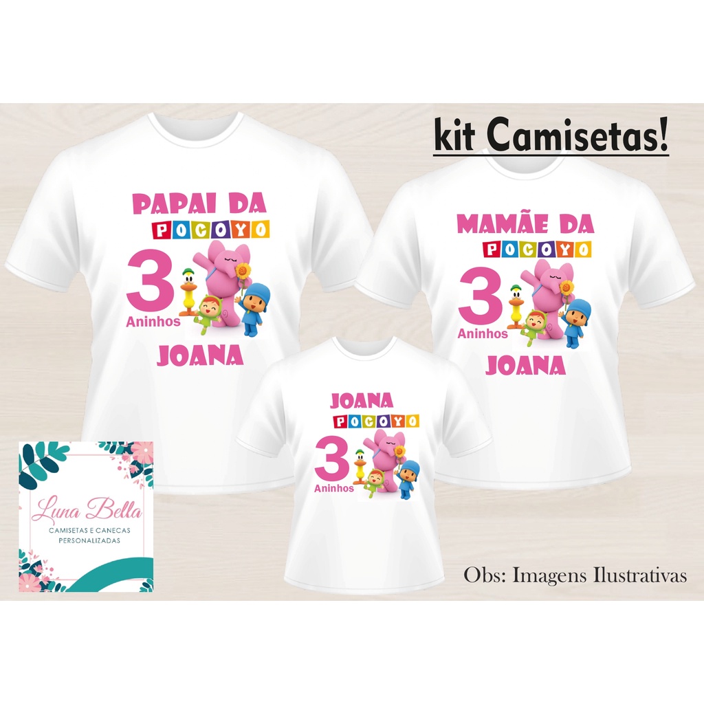 Kit 3 Camisetas Personalizadas Aniversario Pocoyo Menina 2 Camisetas Adulto e 1 Camiseta Infantil Shopee Brasil Very well made.