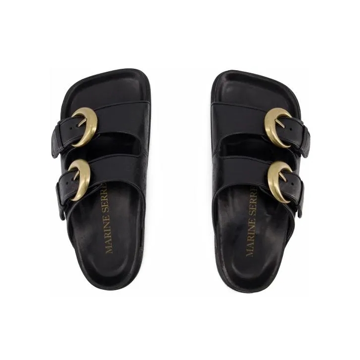 Marine Serre Birk Slides Black Leather Black Claquette Very well made.