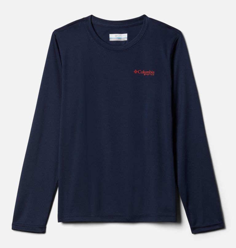 Columbia Boys PFG Terminal Tackle Fish Flag Long Sleeve Shirt Collegiate Navy Red Spark XXS Very well made.