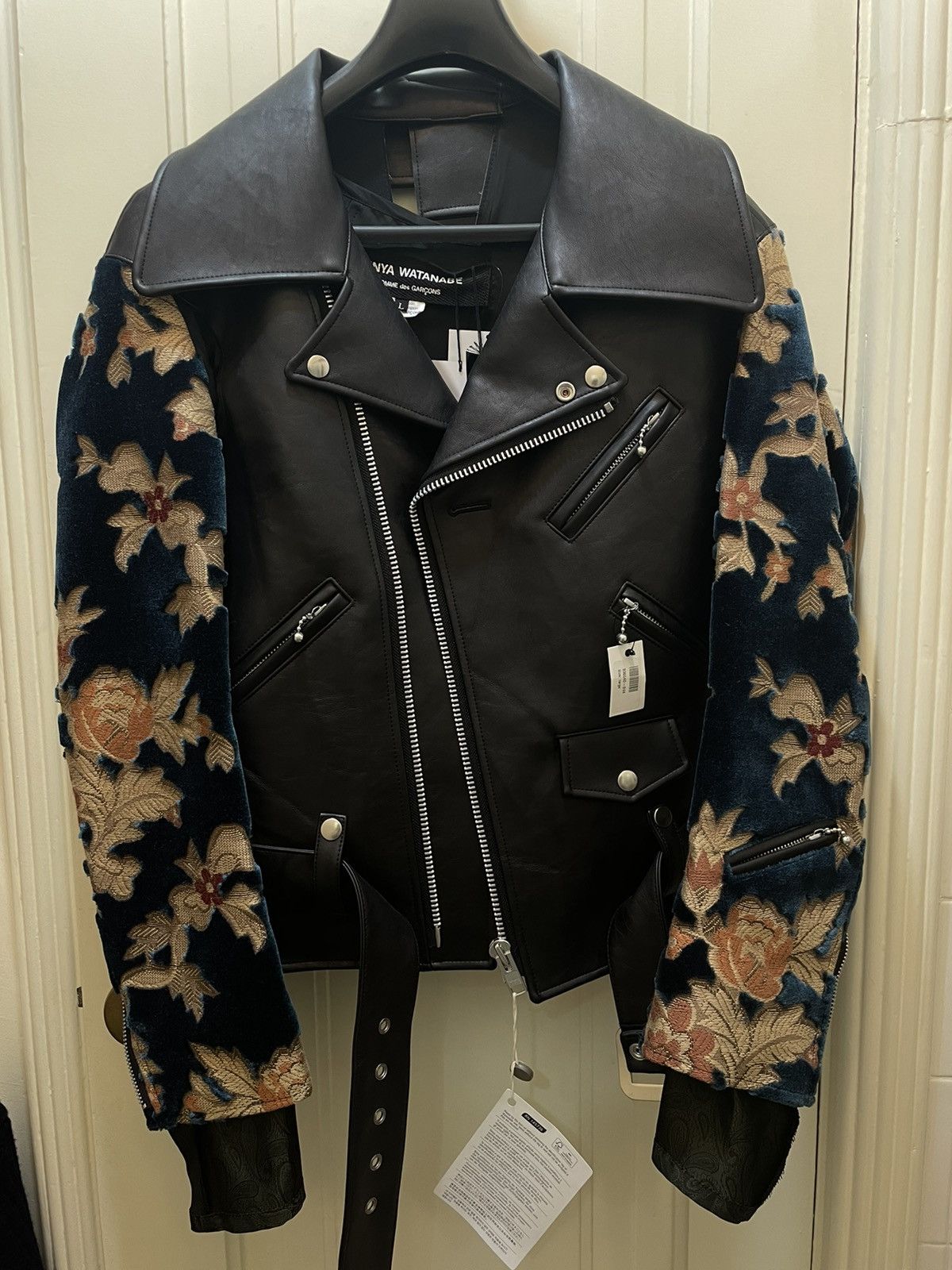 Comme des Garcons Junya Watanabe Comme Des Garcons Floral Velvet Cut Out Leather Biker Jacket Grailed Very well made.
