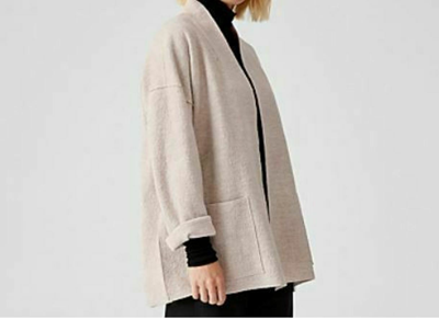 Pre owned Eileen Fisher System Petites High Collar Boiled Wool Kimono Jacket Maple Oat In Beige ModeSens Very well made.