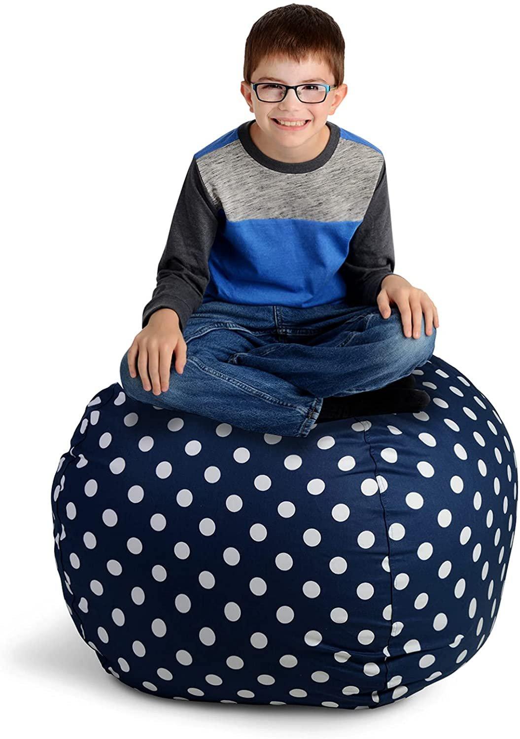 Creative QT Stuff n Sit Stuffed Animal Storage Bean Bag 33 In Navy Polka Dot GameStop Very well made.