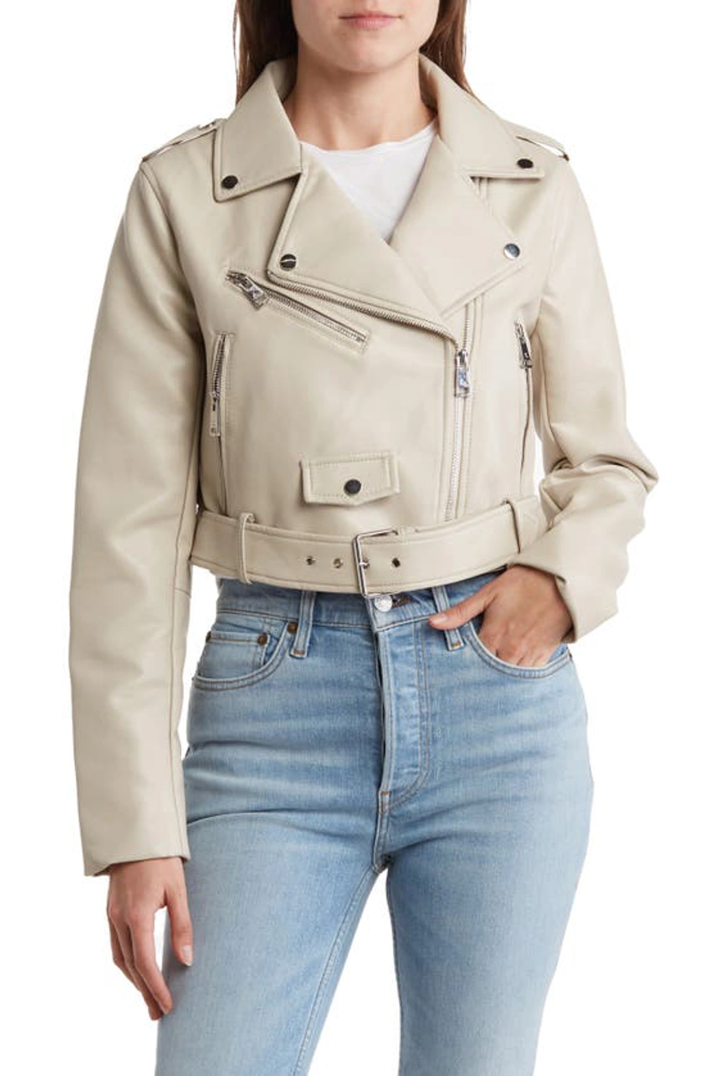 Elodie Vegan Leather Moto Jacket In Stone ModeSens Very well made.