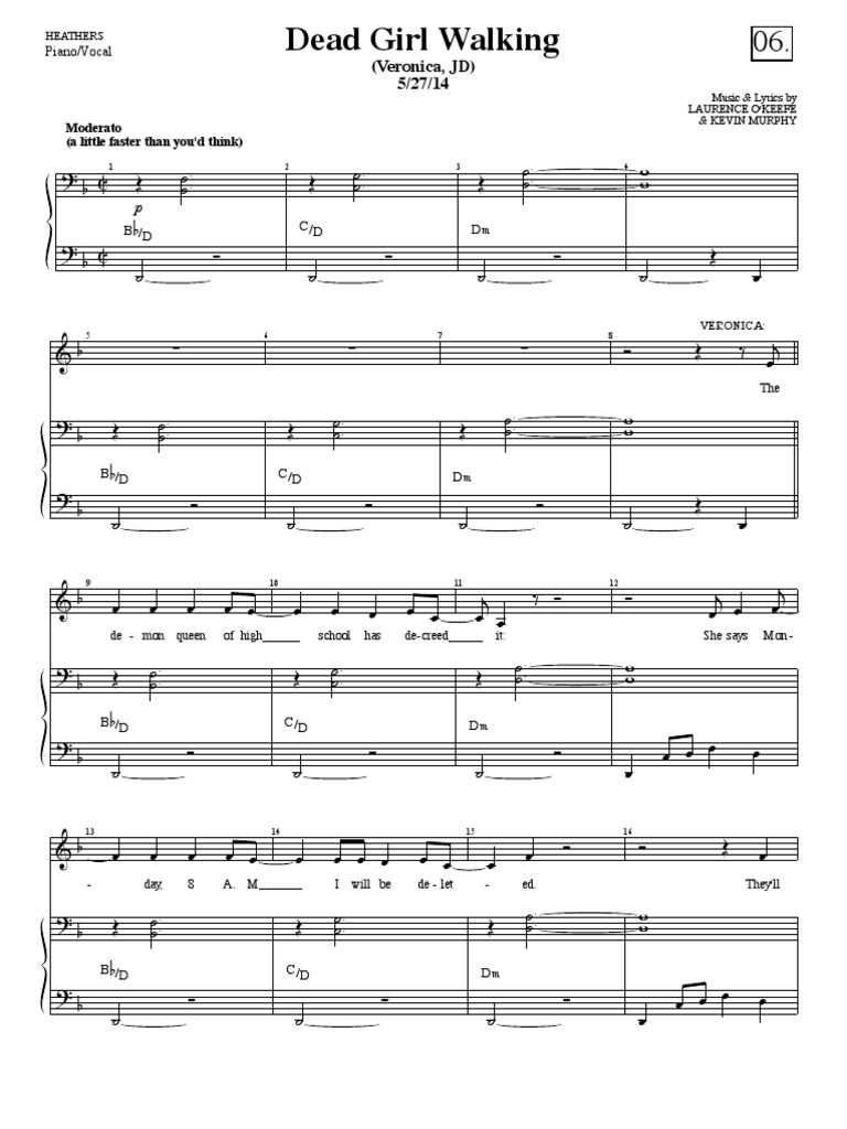Dead Girl Walking Heathers O Keefe Laurence and Murphy Kevin Sheet music for Piano Tenor Mezzo soprano Solo Musescore Very well made.