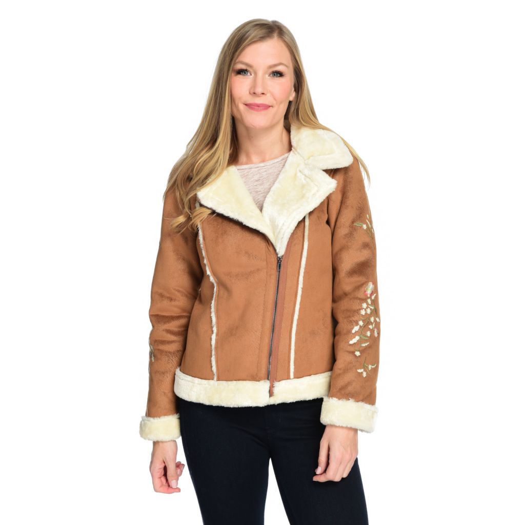 Solitaire Embroidered Faux Suede Zip Front Faux Fur Lined Moto Jacket ShopHQ Very well made.