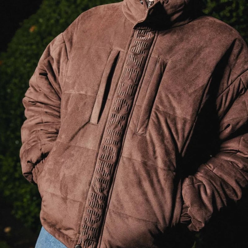 P R O V Faux Suede Puffer Jacket bronze56k Brown Grey Height 175cm Size Medium Instagram Very well made.
