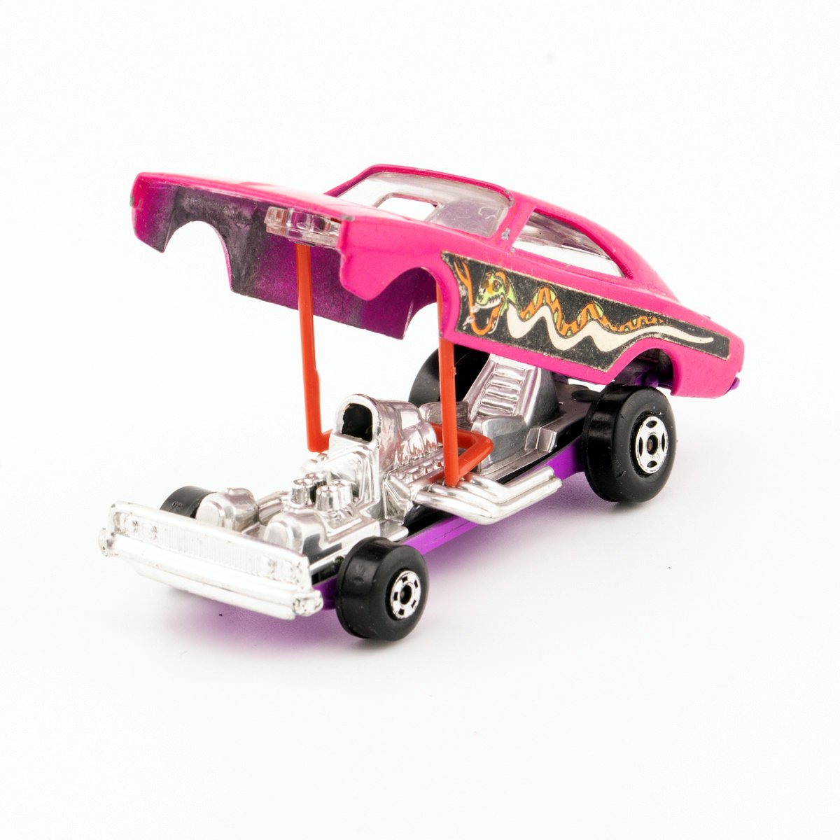 Matchbox Lesney 70c Dodge Dragster Pink Snake Label Black Base 88907 Very well made.