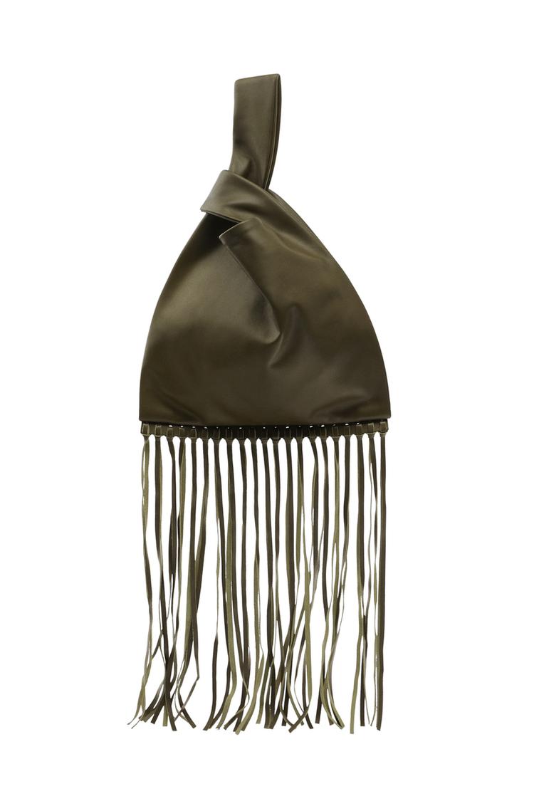 FRINGED LEATHER HANDBAG Khaki Green ZARA United States Very well made.