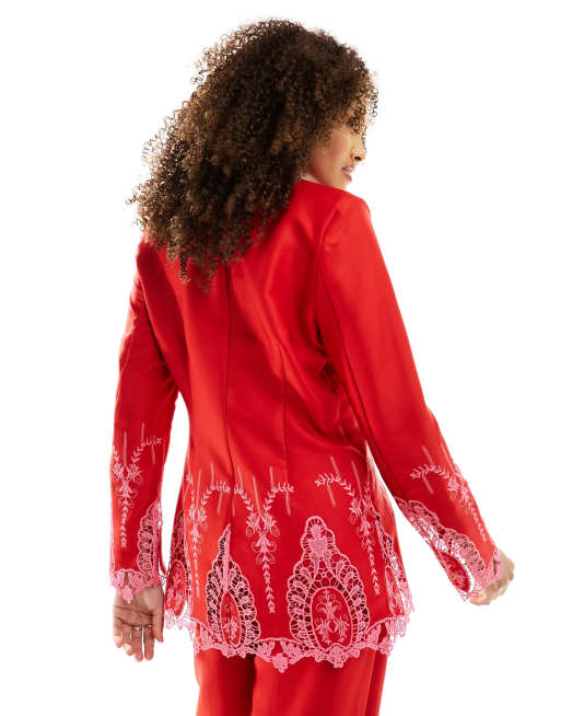 Never Fully Dressed embroidered blazer suit in red and pink part of a set ASOS Very well made.