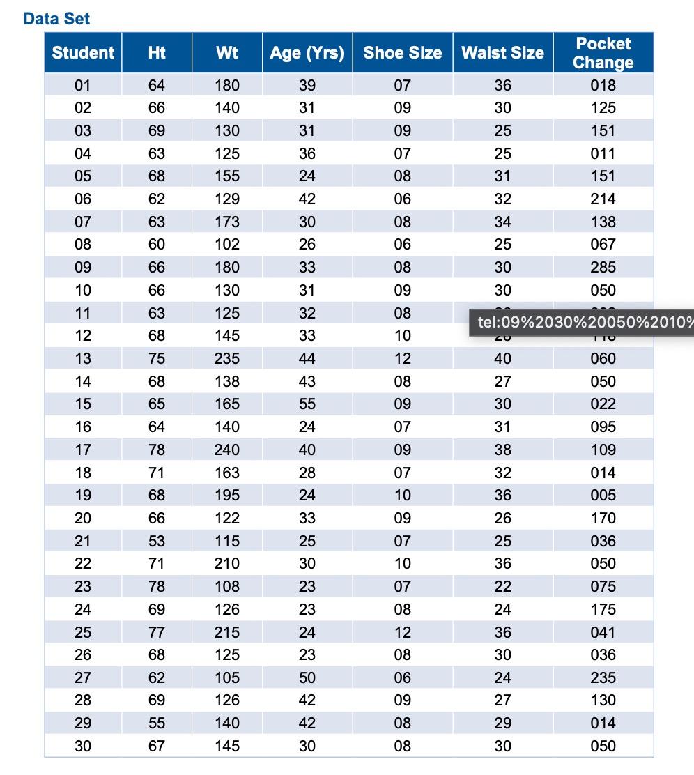 Solved Data Set Student t Wt Age Yrs Shoe Size Waist Size Chegg Very well made.
