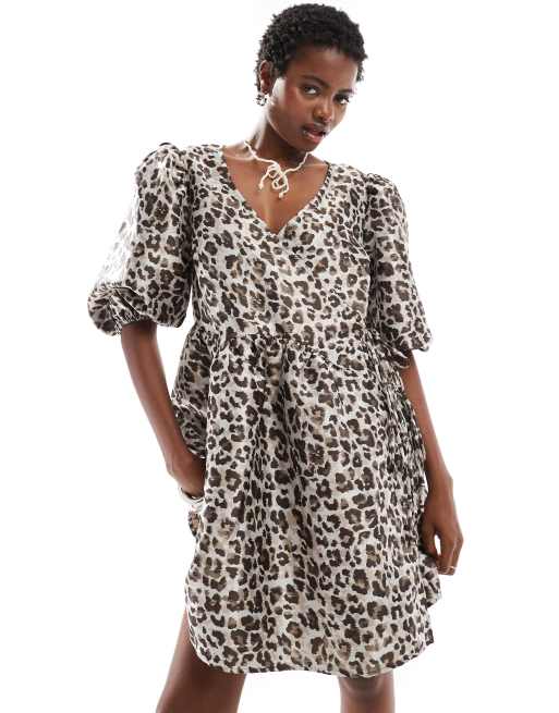 Glamorous puff sleeve mini smock dress with bow back in blue floral organza Glamorous Color verschwommenes Blumenmuster Size 32 Very well made.