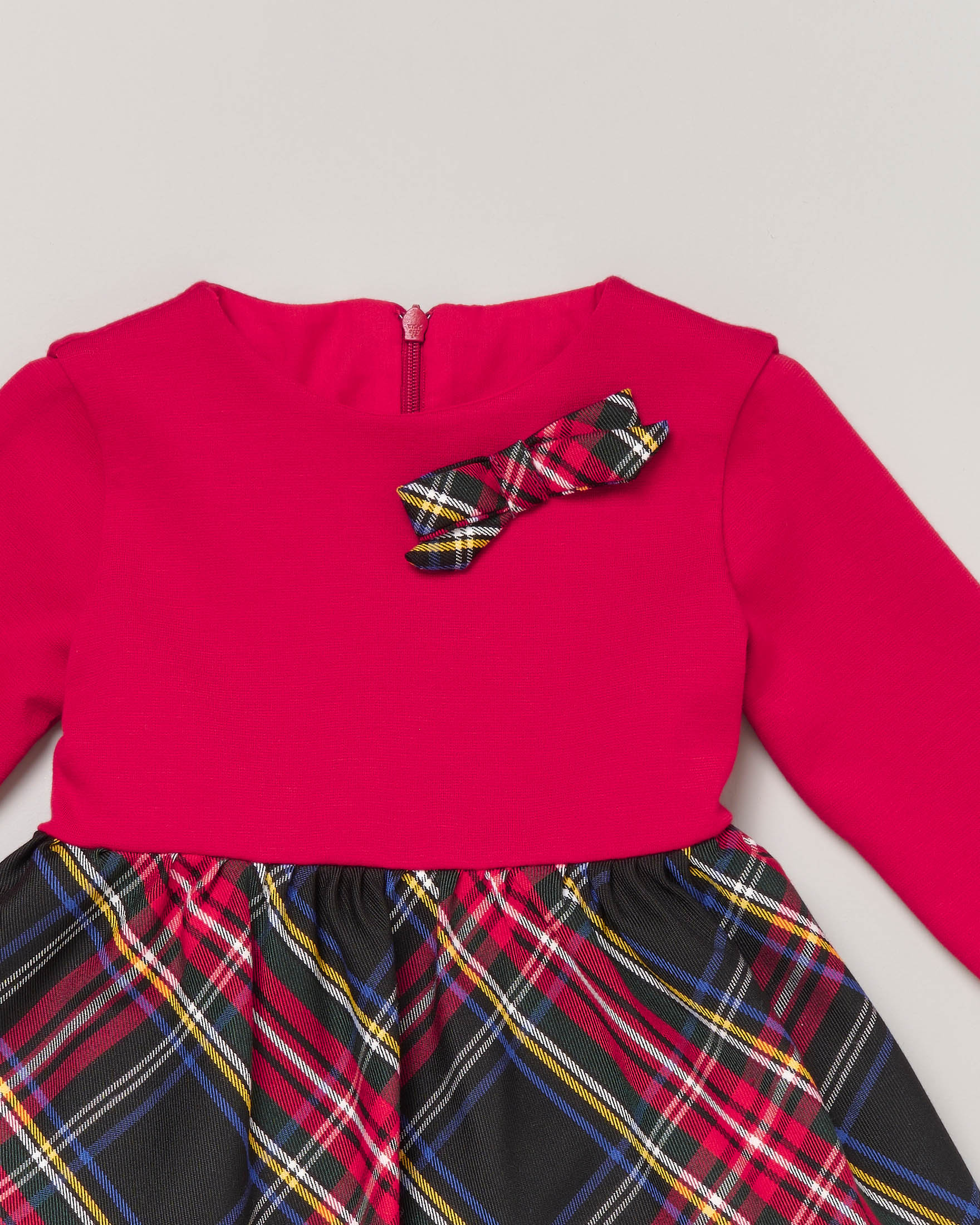 Abito rosso in punto Milano con gonna scozzese e fiocco coordinato 9 36 mesi Very well made.