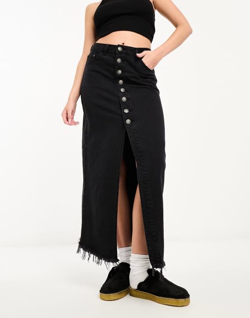 Stradivarius Gonna midi in denim nera con bottoni Very well made.