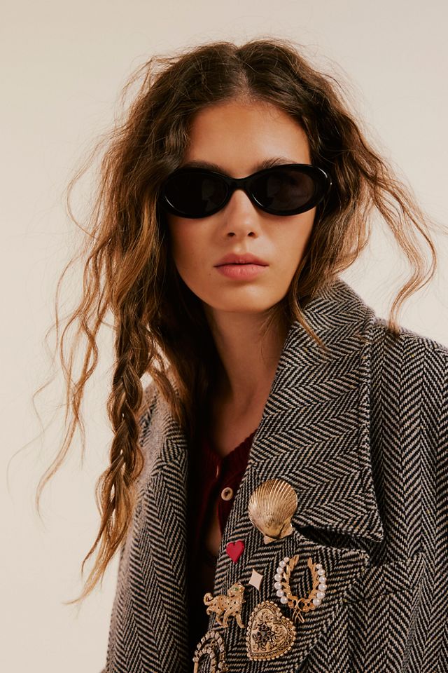 Free People Ella Slim Oval Sunglasses Black Very well made.