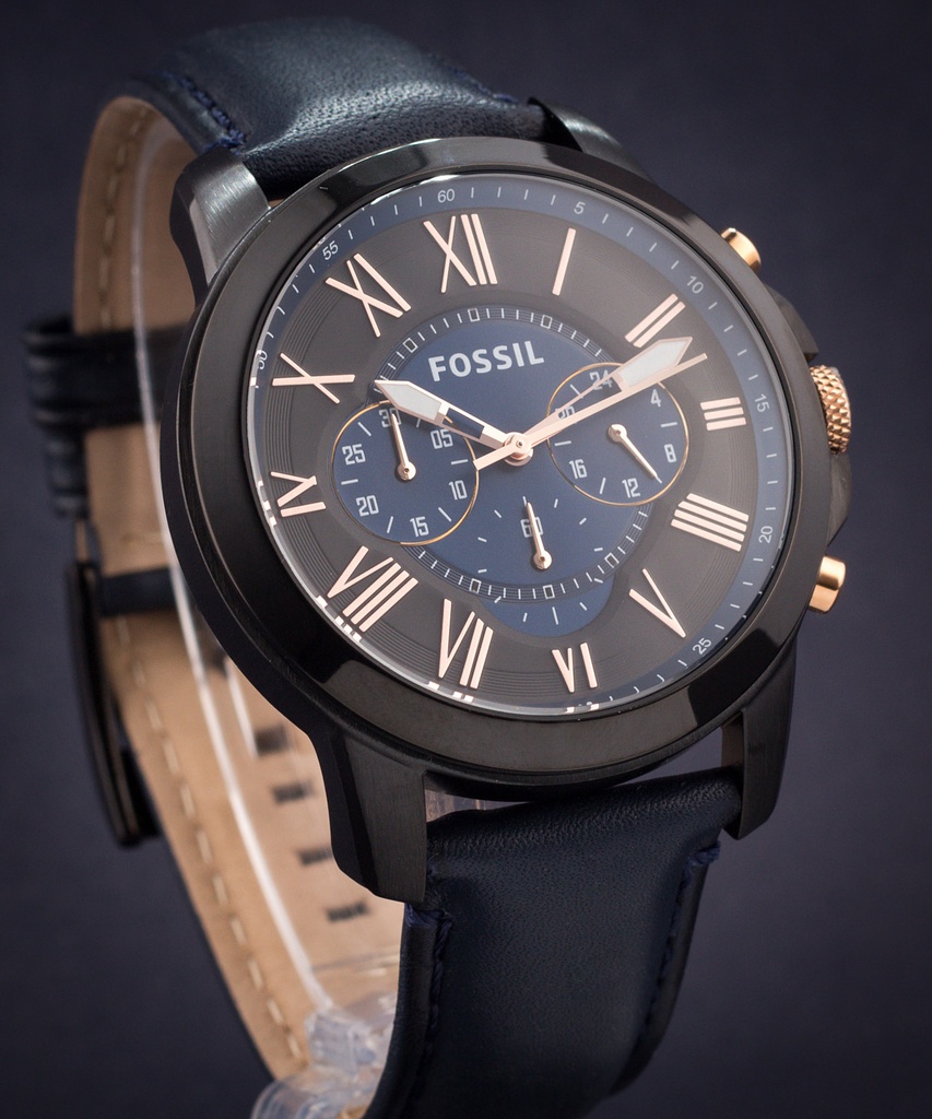 Fossil Grant Chronograph Black Dial Blue Leather Strap Watch for Men Very well made.