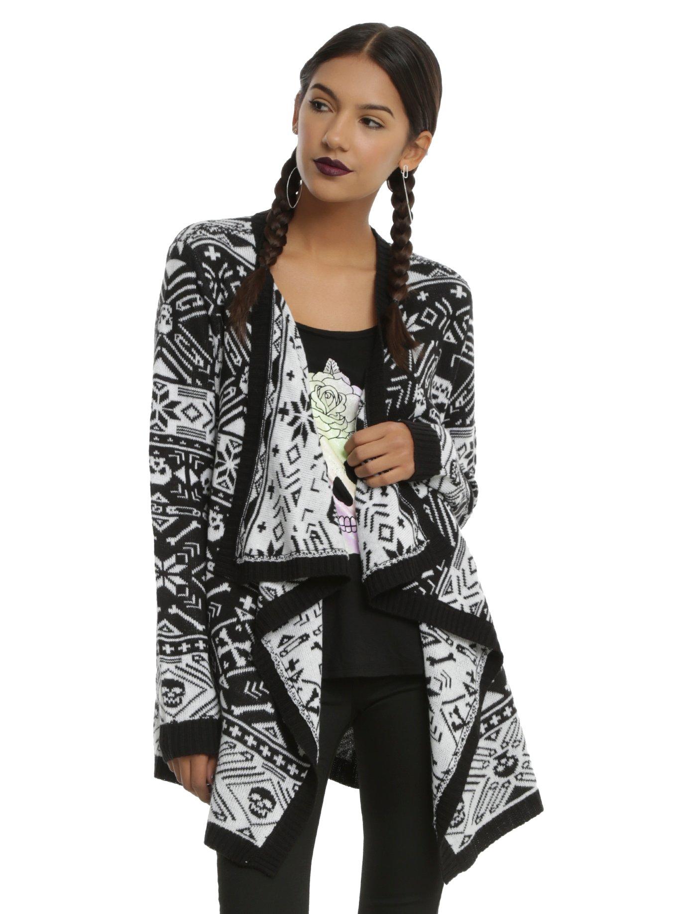 Black White Skull Fair Isle Girls Flyaway Cardigan Hot Topic Very well made.