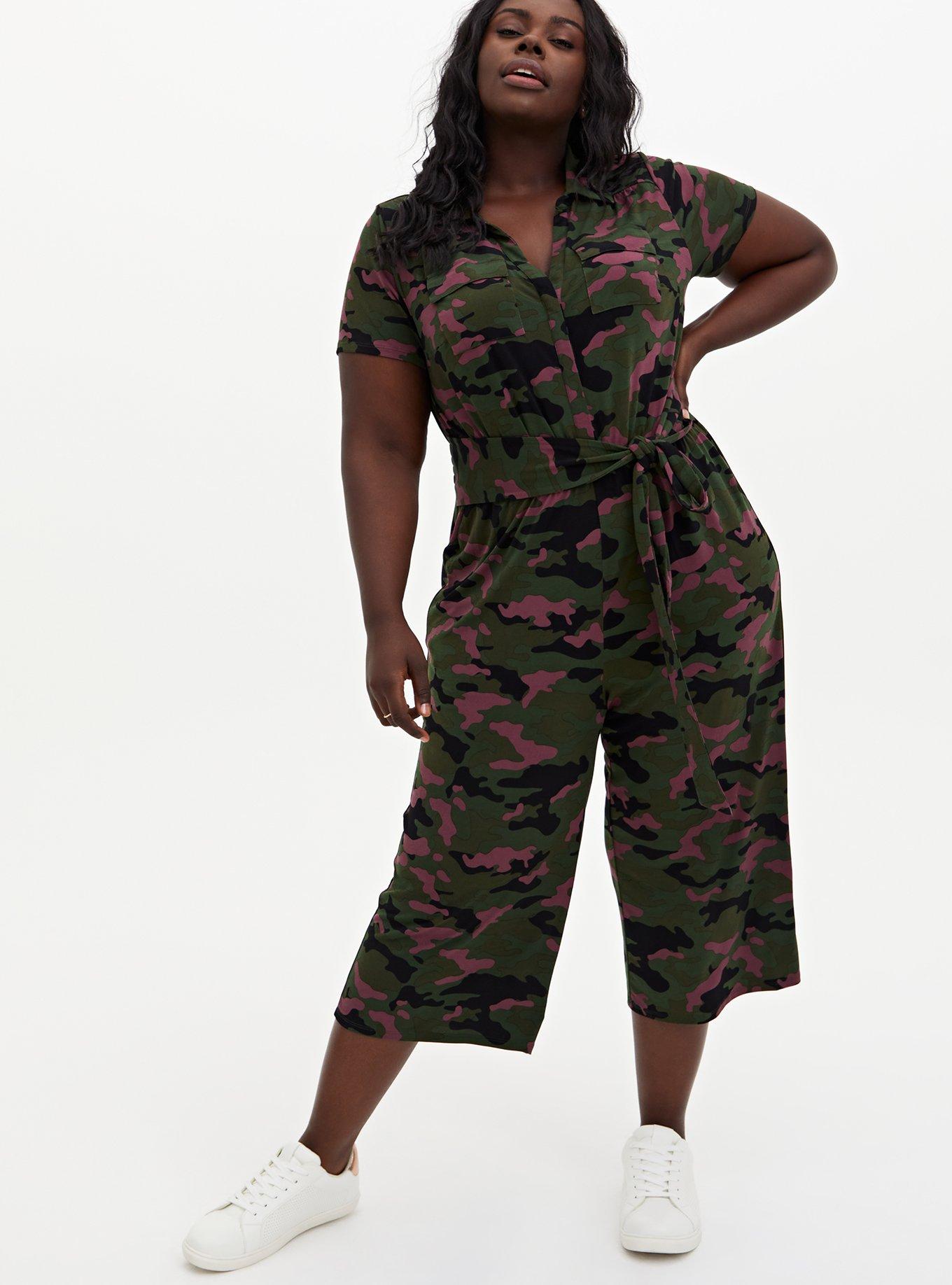 Plus Size Olive Green Camo Studio Knit Culotte Jumpsuit Torrid Very well made.