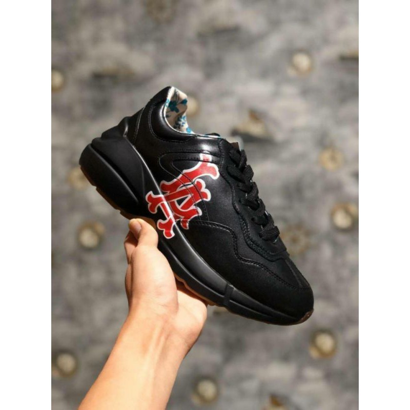 Gucci Black Leather LA Angels Rhyton Sneakers Size 44.5 Gucci TLC Very well made.