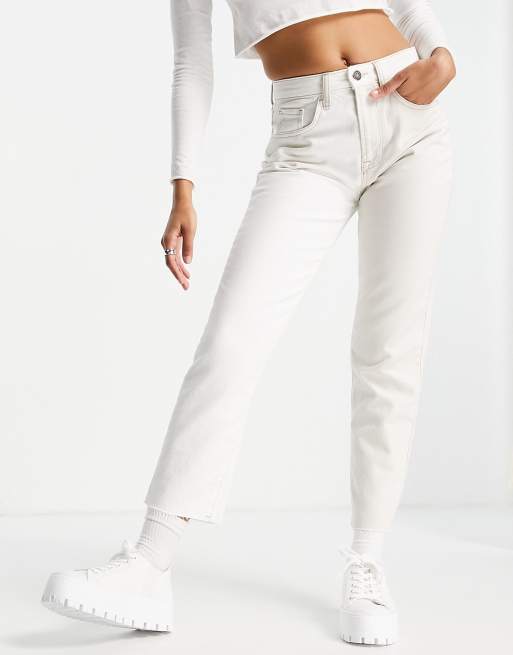 Stradivarius Jean mom bicolore contrastant Ecru ASOS Very well made.