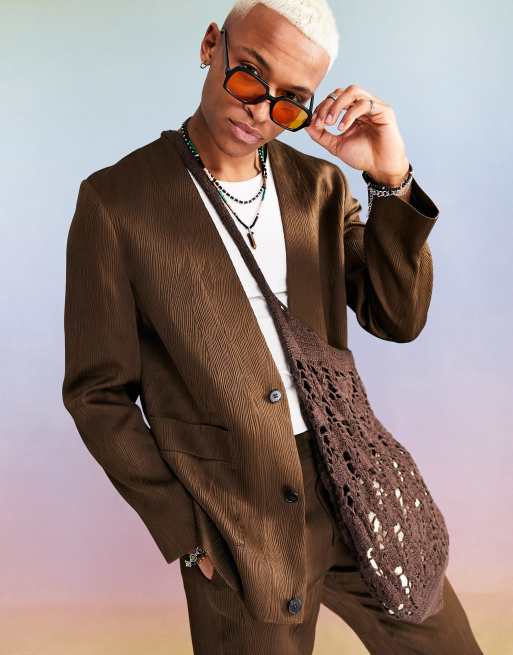 ASOS DESIGN Giacca da abito skinny senza colletto in tessuto irregolare stropicciato marrone Very well made.