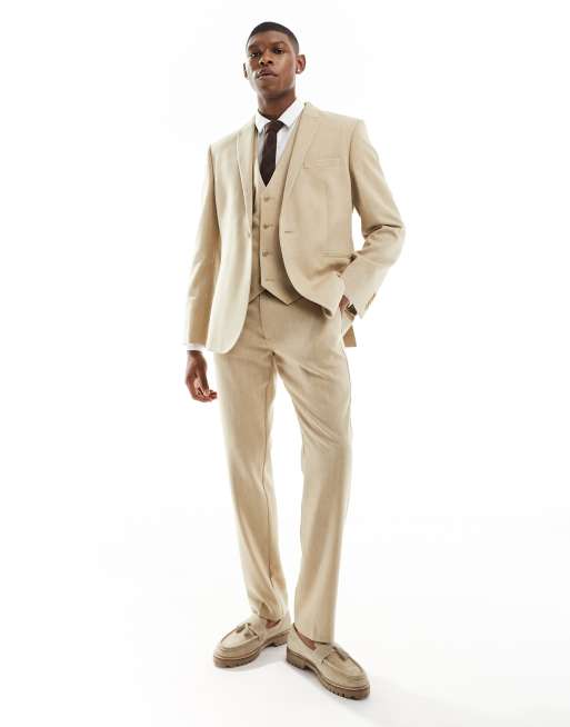 ASOS DESIGN Wedding Giacca da abito slim in misto lana beige con intreccio a cesto Very well made.