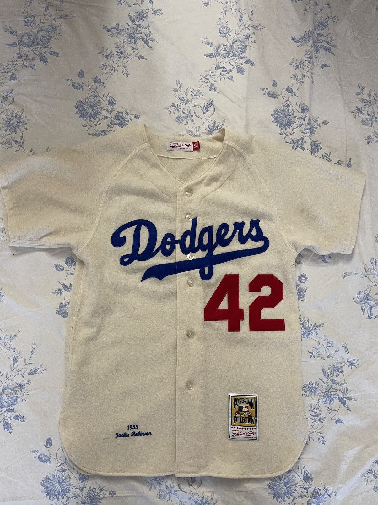 Cooperstown Collection Mitchell Ness Jackie Robinson Brooklyn Dodgers Mitchell Ness 1955 Cooperstown Collection Authentic Jersey Cream Grailed Very well made.