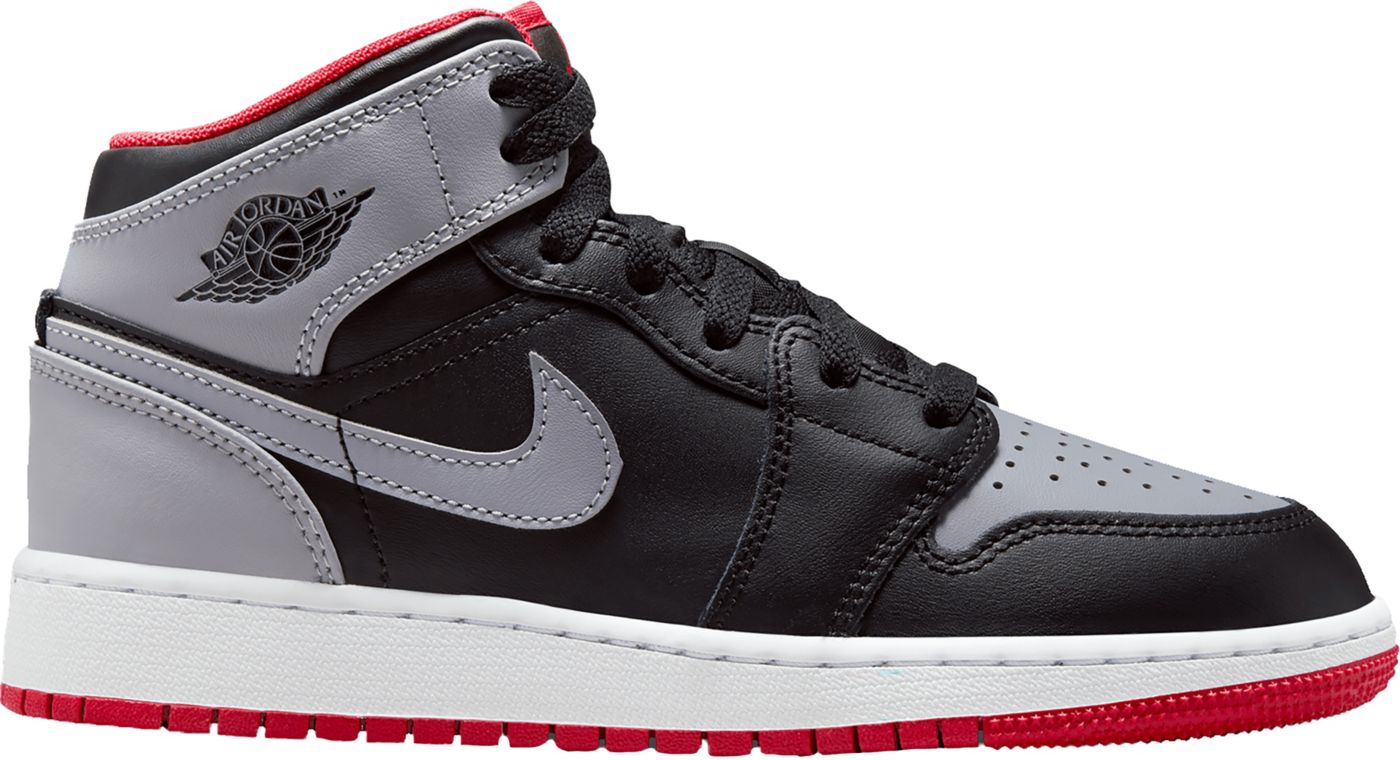 Air Jordan 1 Mid Grade School Lifestyle Shoes Black Gym Red White Very well made.
