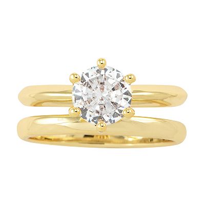 City Luxe Gold Tone Cubic Zirconia Duo Wedding Ring Set Very well made.