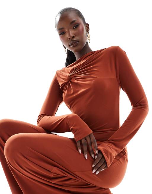 ASOS Design Long Sleeve Knot Detail Jumpsuit in rust Orange Very well made.