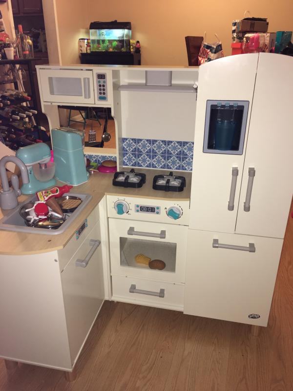 Gymax Kids Corner Kitchen Playset Wooden Pretend Play Toy with Microwave White Walmart Very well made.