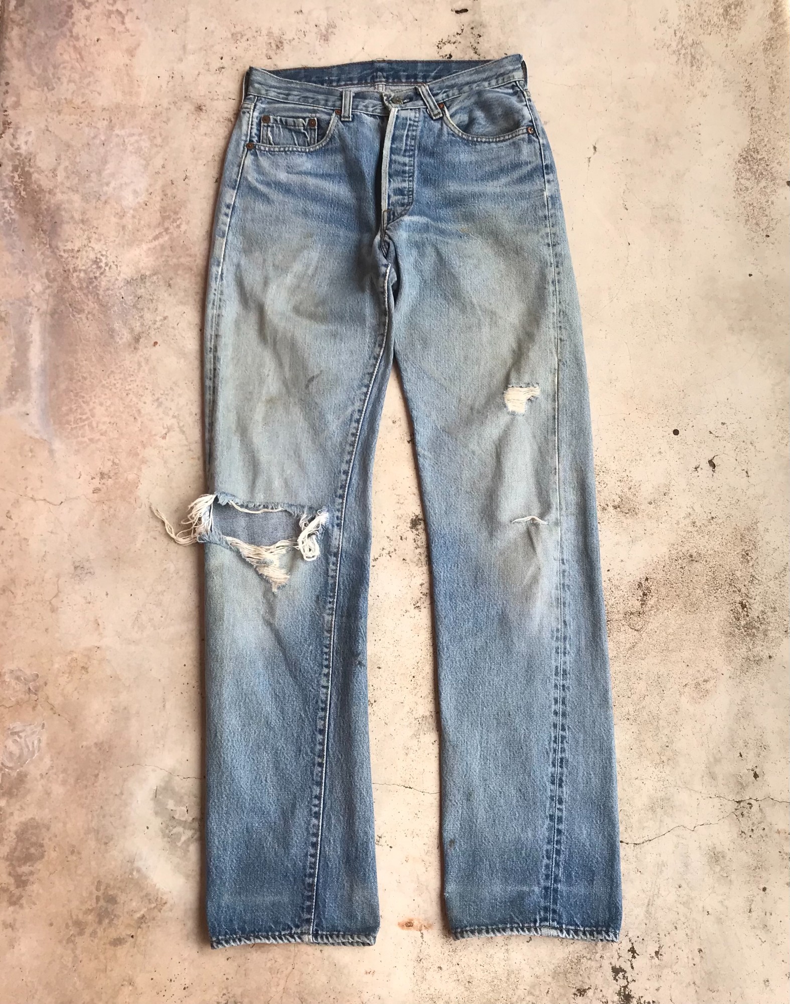 Levi s Vintage Levis 501 80 s Rindem 6 faded dirty Distressed redline selvedged denim Waist 29x34 inch tr japan89distressed REVERSIBLE Very well made.