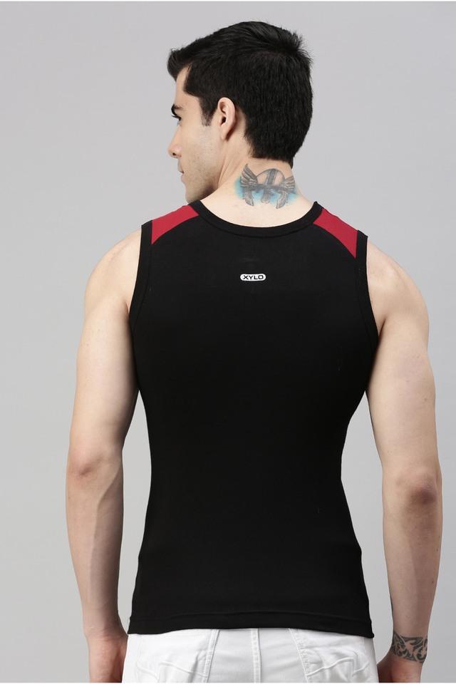 Buy LUX COZI Black Solid Cotton Blend Regular Fit Mens Gym Vest Pack of 3 Shoppers Stop Very well made.