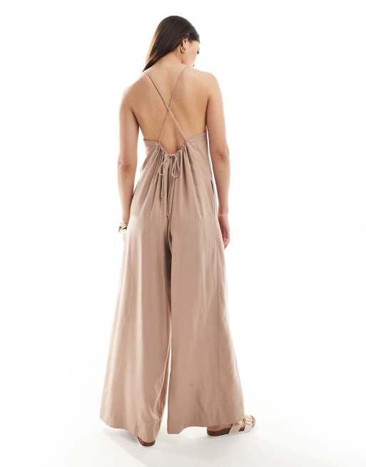 ASOS DESIGN racer neck Crosshatch linen jumpsuit in almond ASOS Very well made.