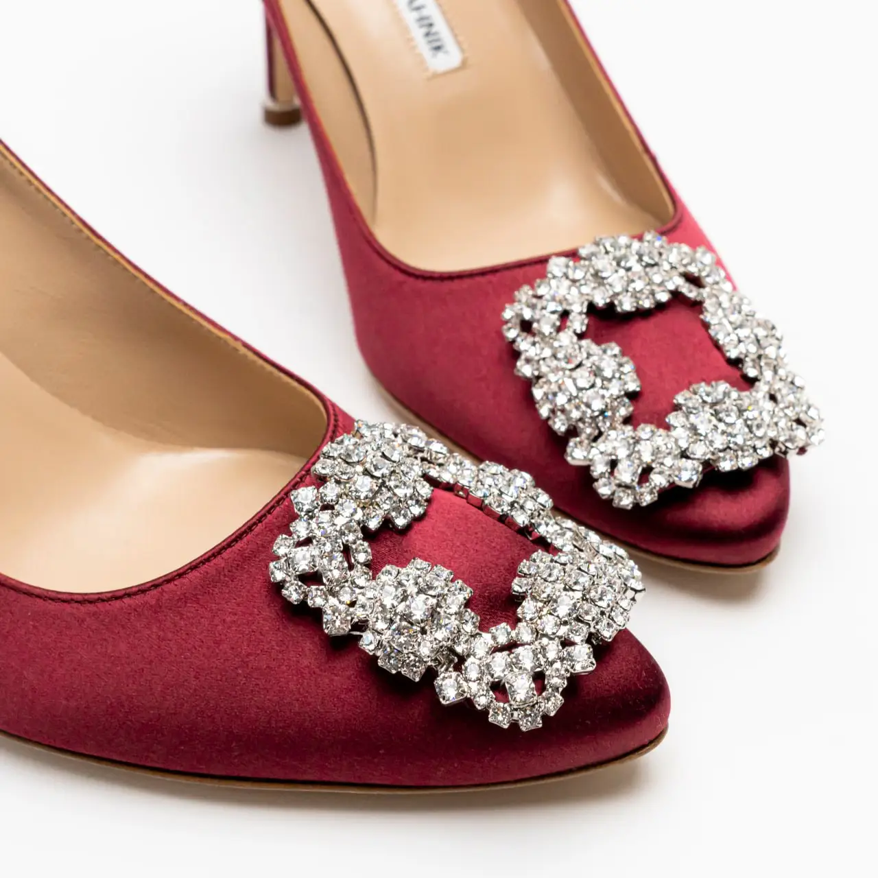 HANGISI 70 White and Red Satin Jewel Buckle Pumps Manolo Blahnik Very well made.