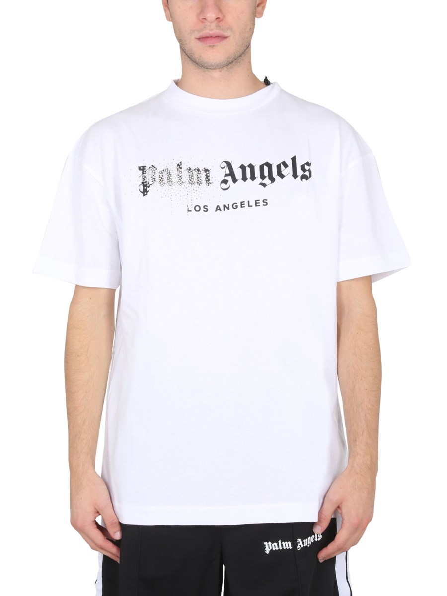 PALM ANGELS T SHIRT GIRCOLLO IN JERSEY DI COTONE CON STAMPA LOGO CON VERNICE E STRASS Eleonora Bonucci Very well made.