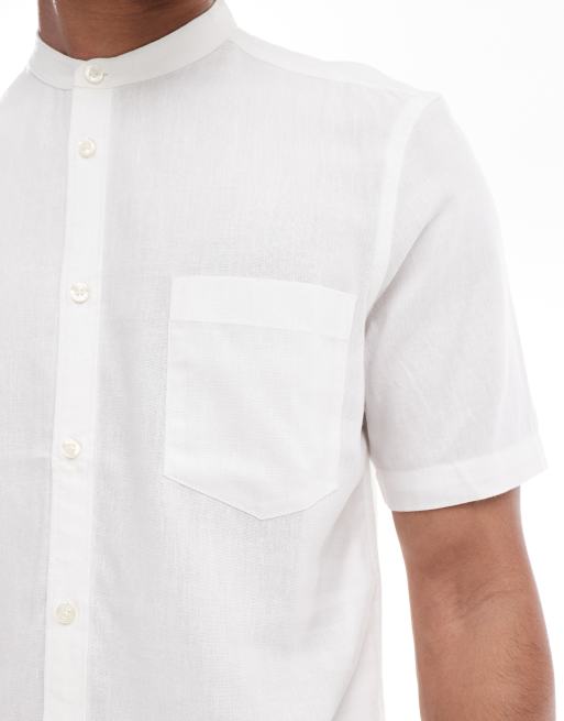 French Connection short sleeve grandad collar linen shirt in white ASOS Very well made.