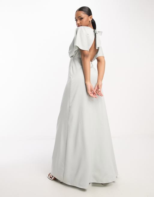Maya Bridesmaid cape sleeve satin maxi dress in pale gray Very well made.