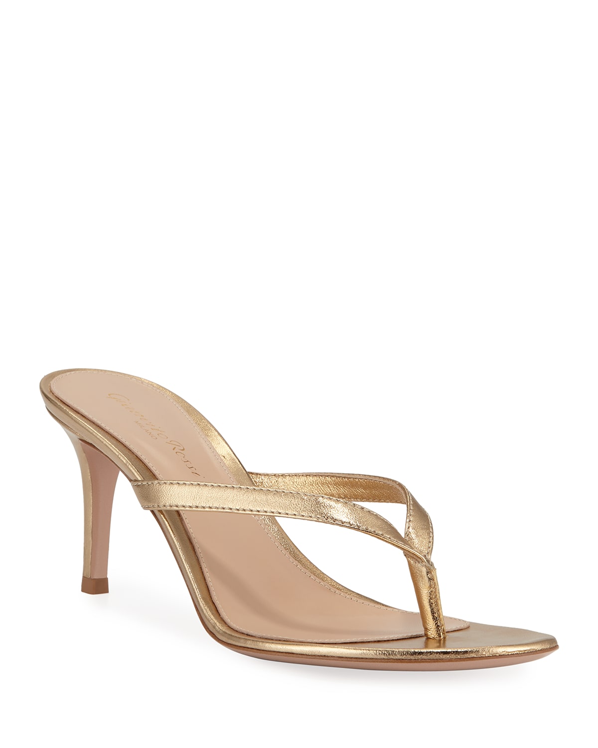 Gianvito Rossi Metallic Leather Mid Heel Thong Sandals Very well made.