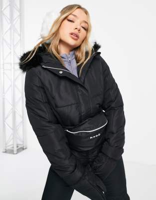 Missguided MSGD Sports Ski jacket with mittens and bum bag in black ASOS Very well made.