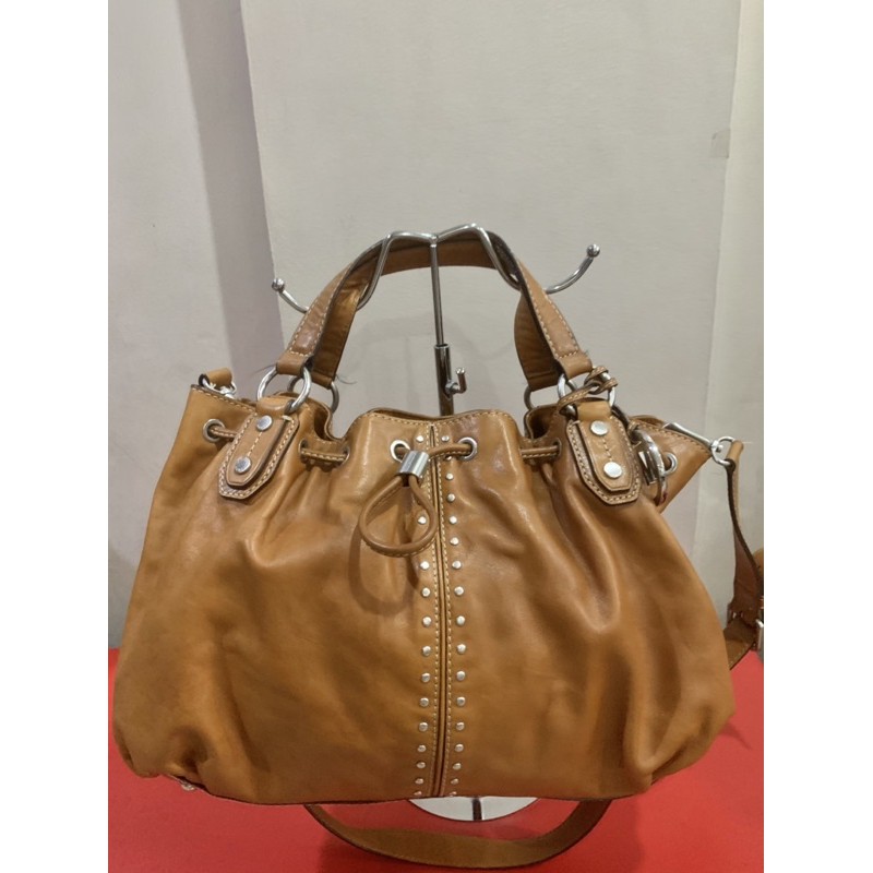 Love bags MK brown 2 way leather bag w silver studs Shopee Philippines Very well made.