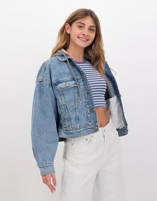 AE Dreamy Drape Stretch Cropped Denim Jacket Very well made.