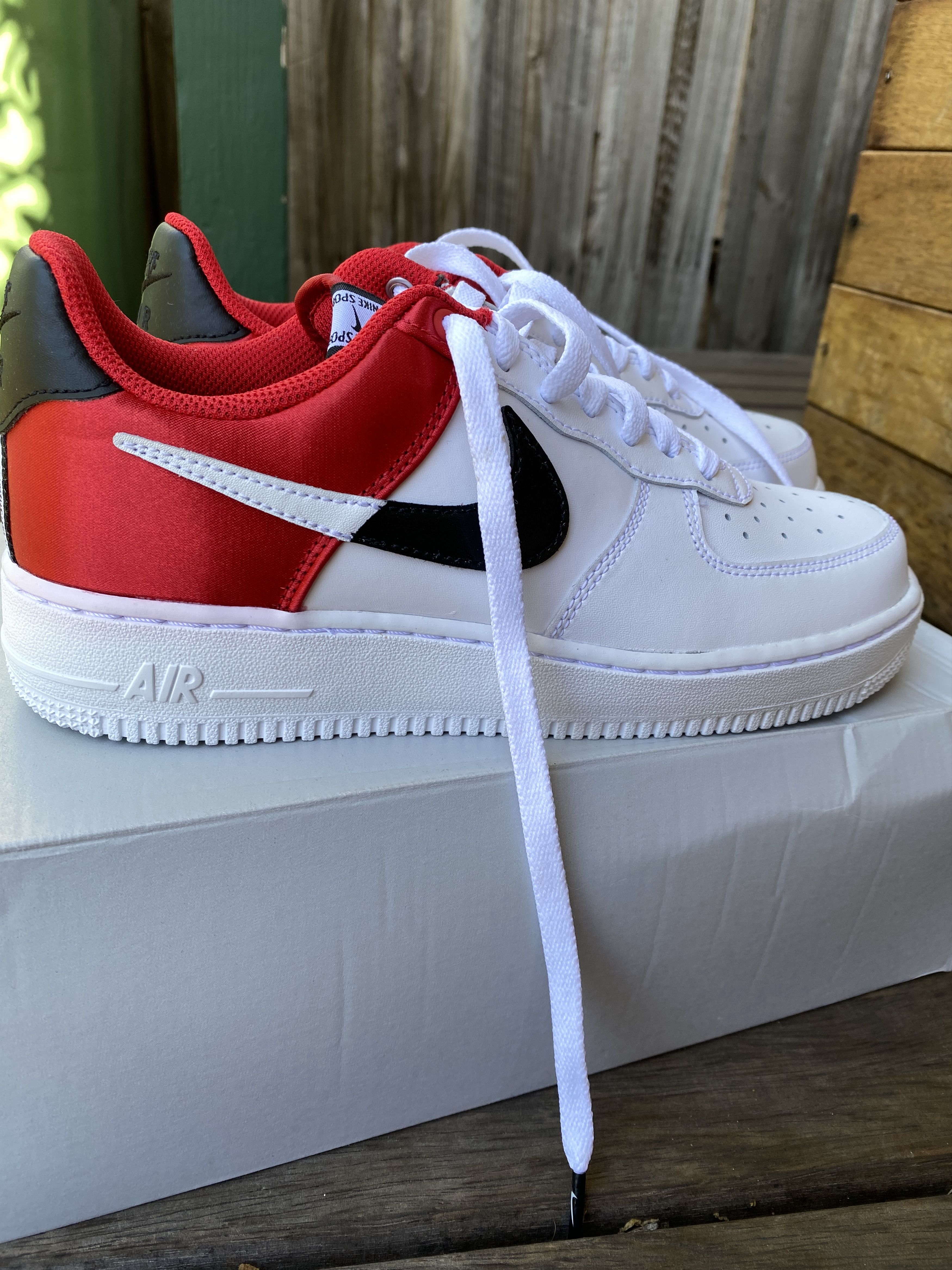 Nike iD Air Force 1 Low LV8 Red Black Shattered NBA Colorway Sneakers Mens 13 Very well made.