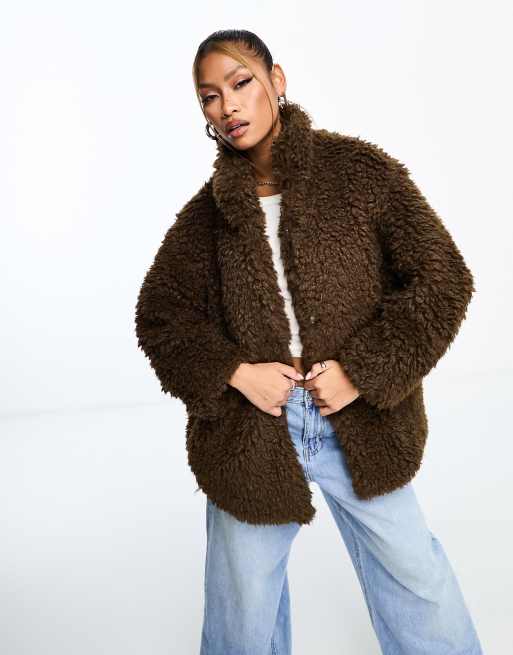 QED London oversized borg coat in chocolate brown ClassicfuncenterShops Very well made.