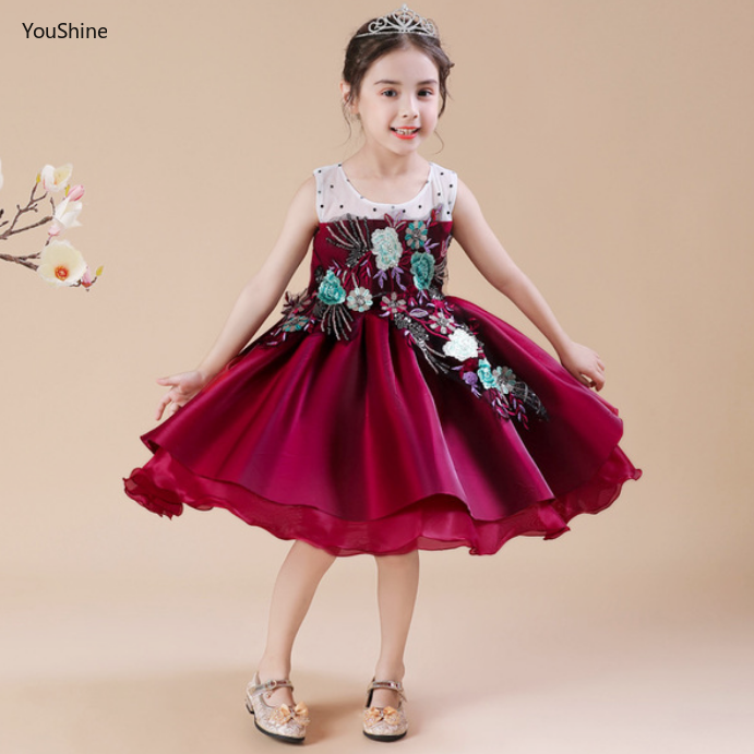 High grade embroidered Princess evening dress kids flower wedding gown for 10 years old girls birthday party dresses Very well made.